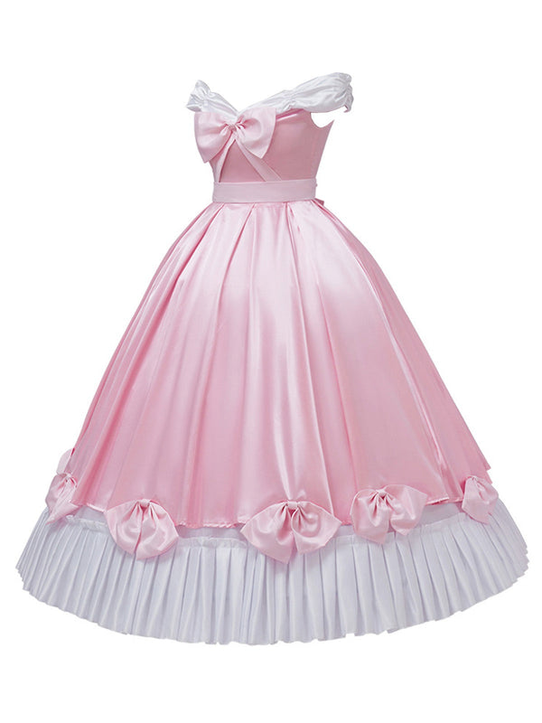 Rosa 1950er Schulterfrei Plissiertes Satin Bogen Prinzessin Kleid