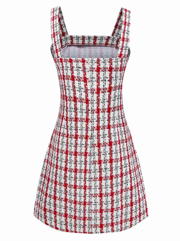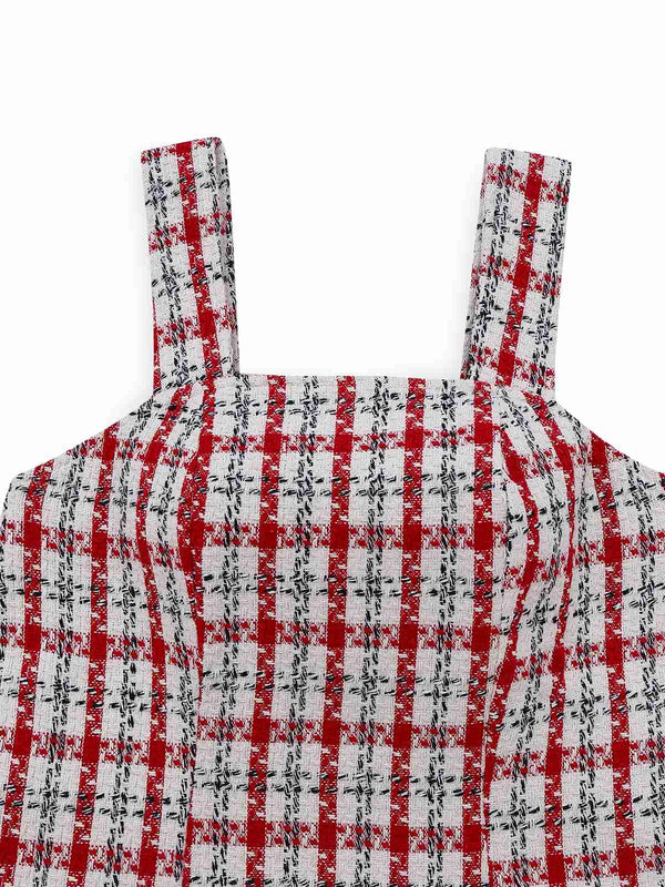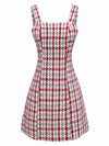 Rot 1950er Spaghettiträger Plaid Swing Kleid