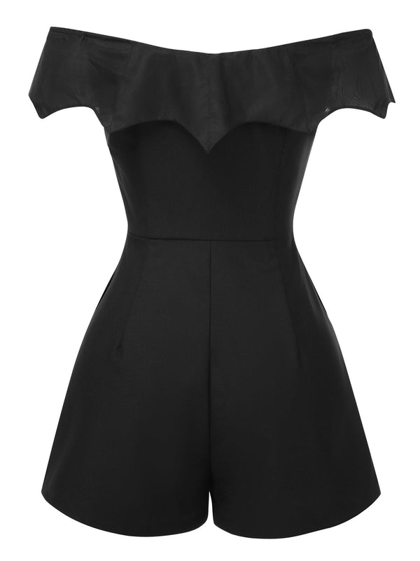 Schwarz 1950er Gothic Schläger Schulterfrei Netz Romper