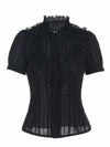Schwarz 1980er Gothic Baumwolle Rüschen Bluse