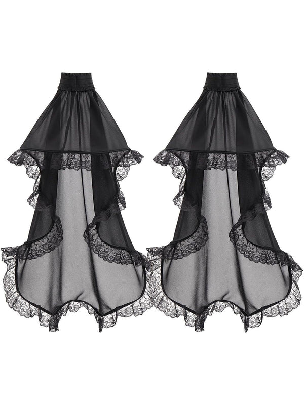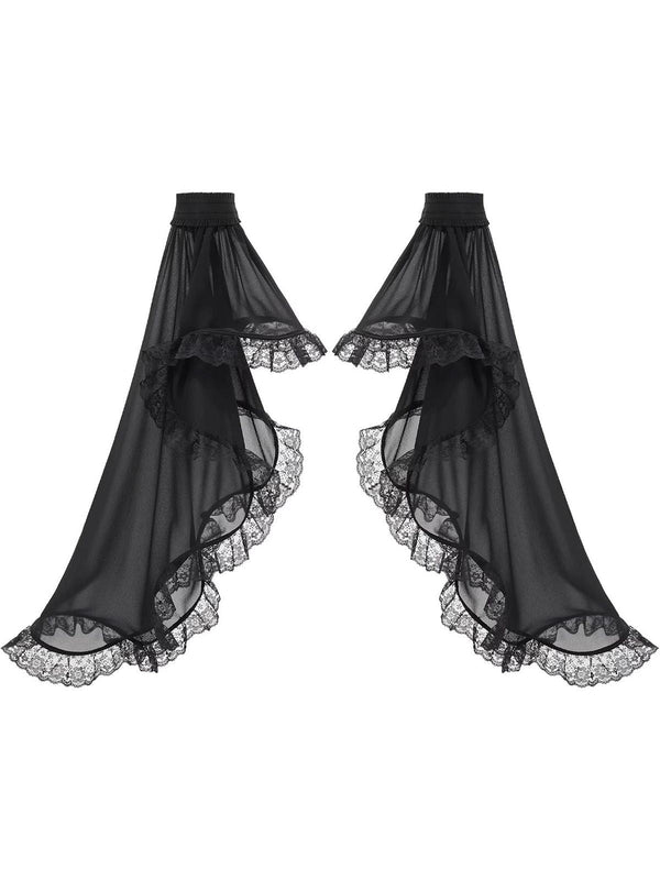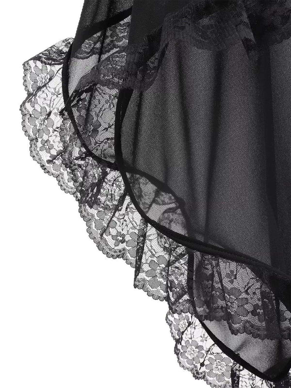 Schwarz Spitze Chiffon Lang Ausgestellte Ärmel