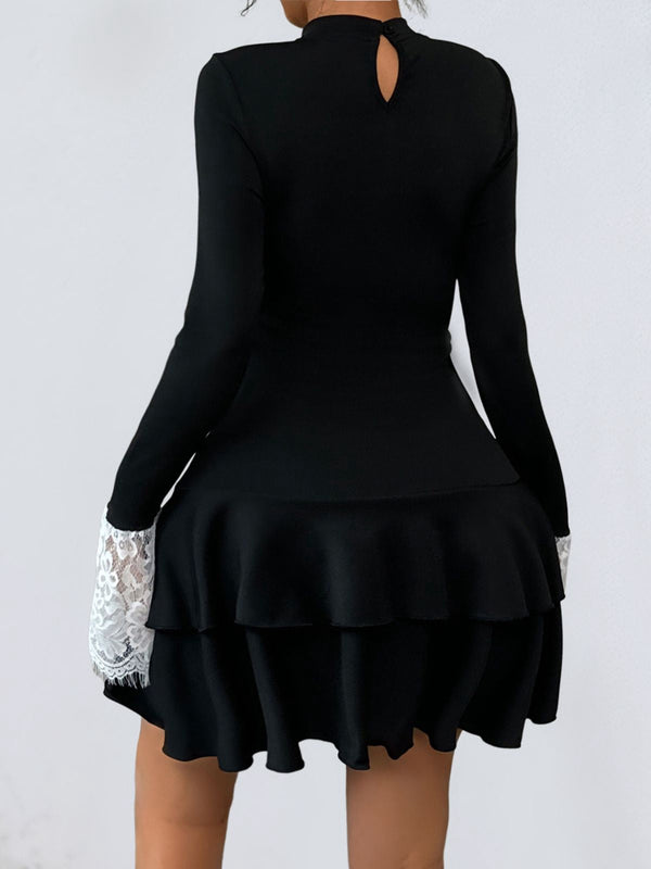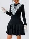 Schwarz & Weiß 1950er Spitze Patchwork Bogen Langarm Kleid