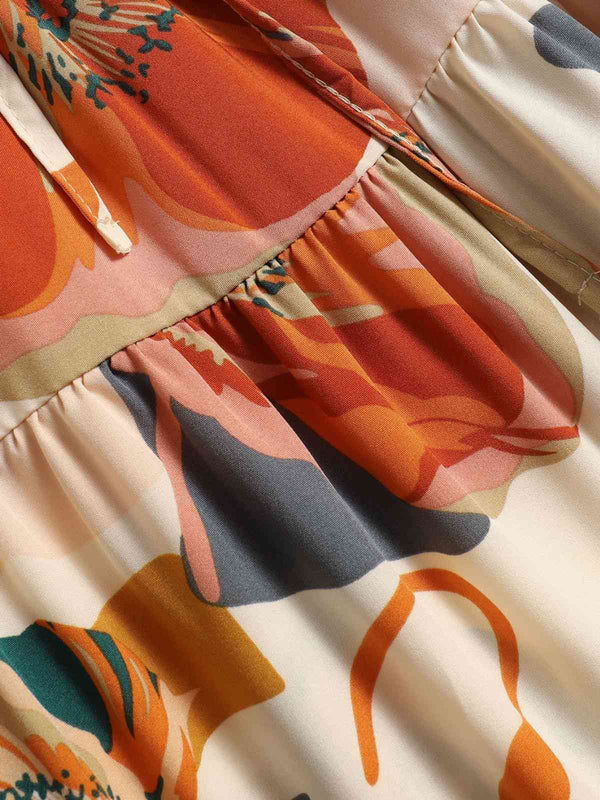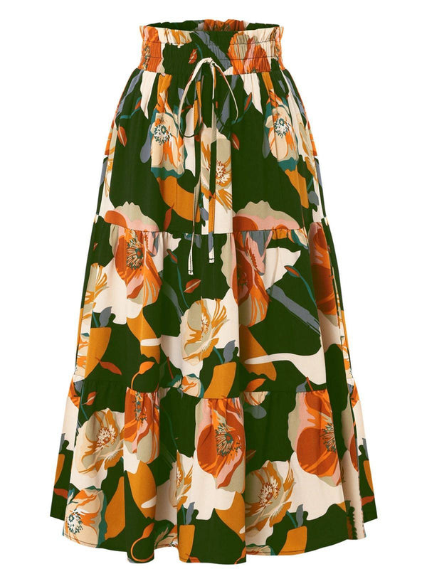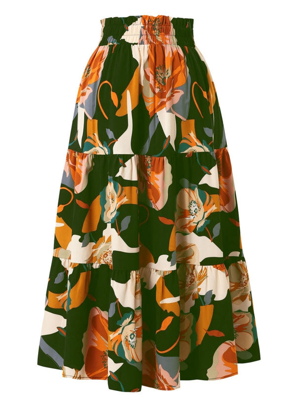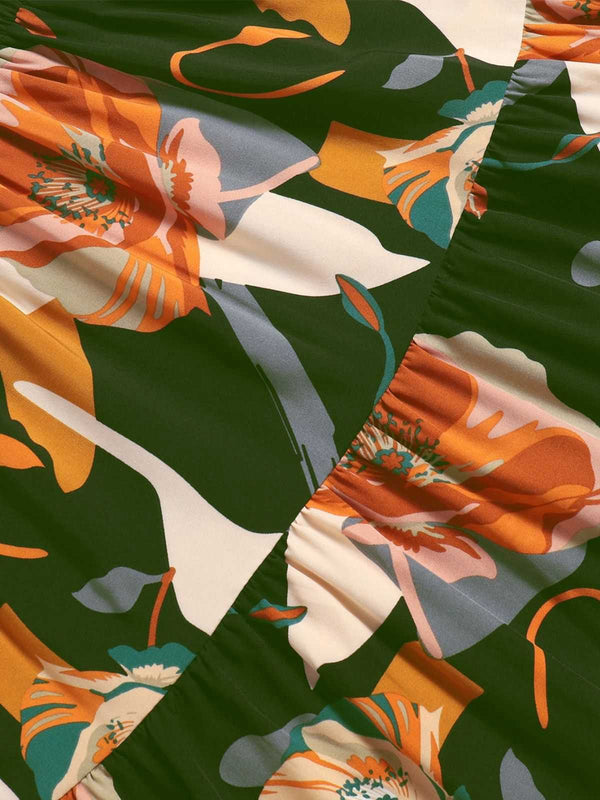 Grün 1970er V-Ausschnitt Paisley Rüschenärmel Kleid
