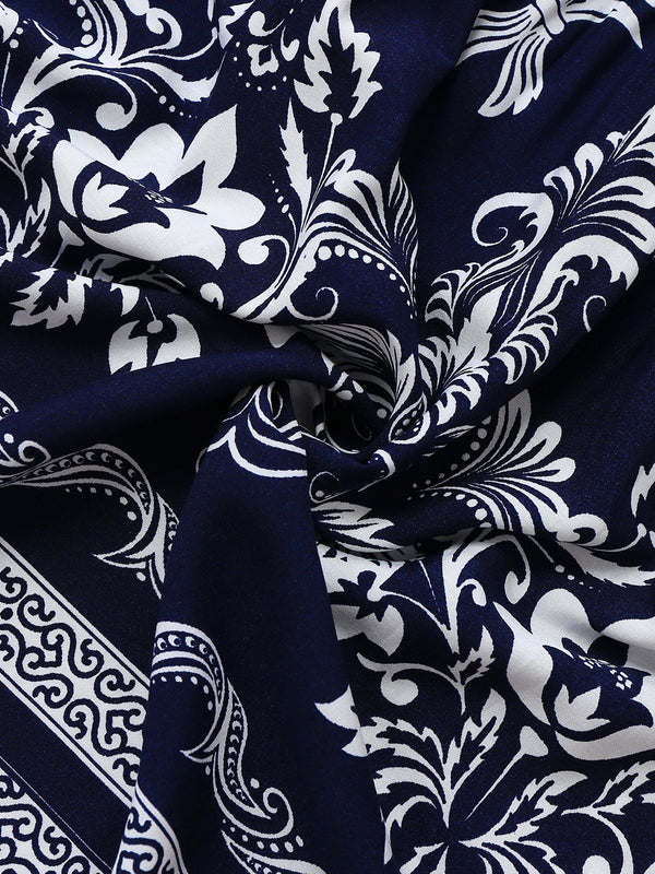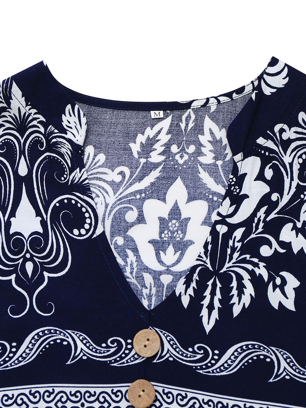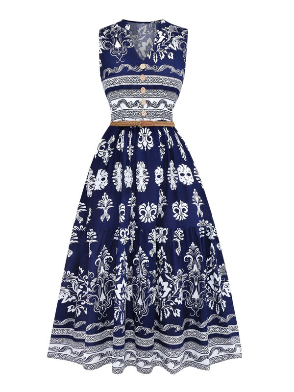 1970er Boho V-Ausschnitt Taste Gürtel Kleid