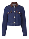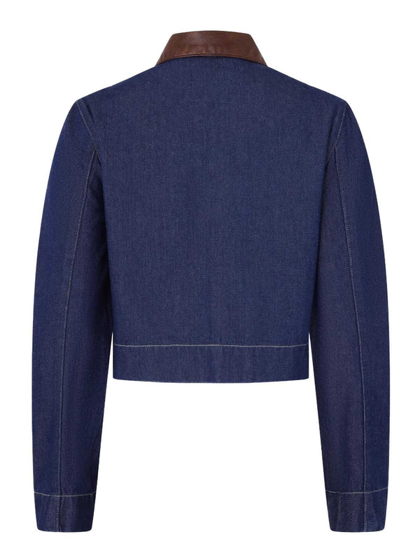 Blau 1950er Leder Rever Tasche Denim Jacke