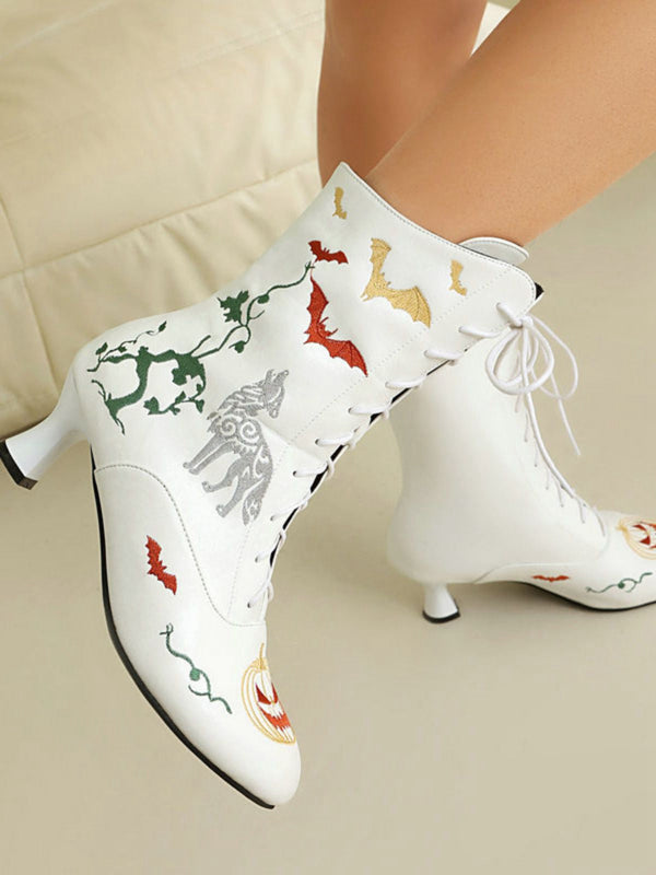 Halloween Schläger Kürbis Schnürung Mitte der Wade Stiefel