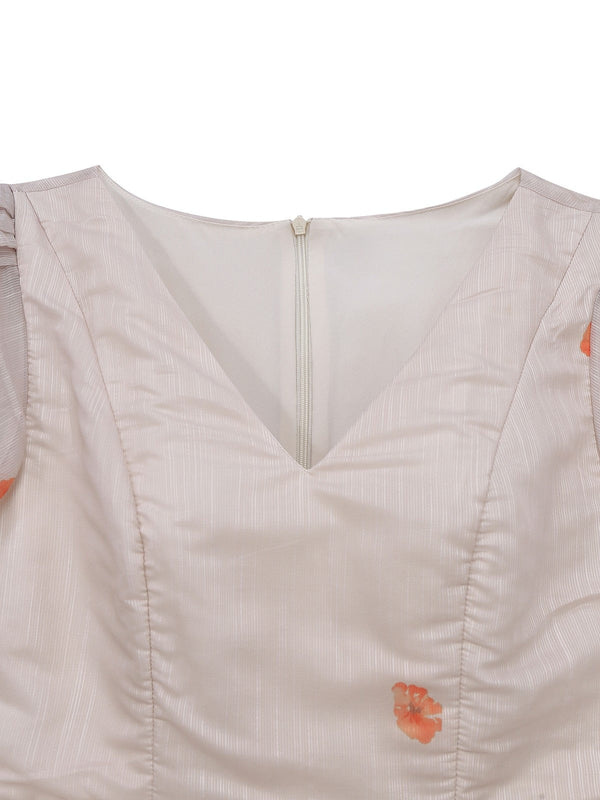 Multicolor 1950er Blumen V-Ausschnitt Laternenhülle Gürtel Kleid