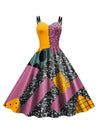 Multicolor 1950er Nightmare Before Christmas Sally Farbblock Kleid