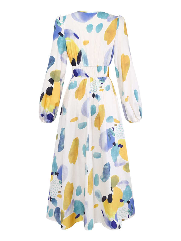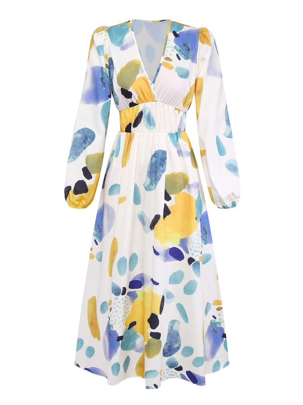 Multicolor 1970er V-Ausschnitt Boho Langarm Maxi Kleid