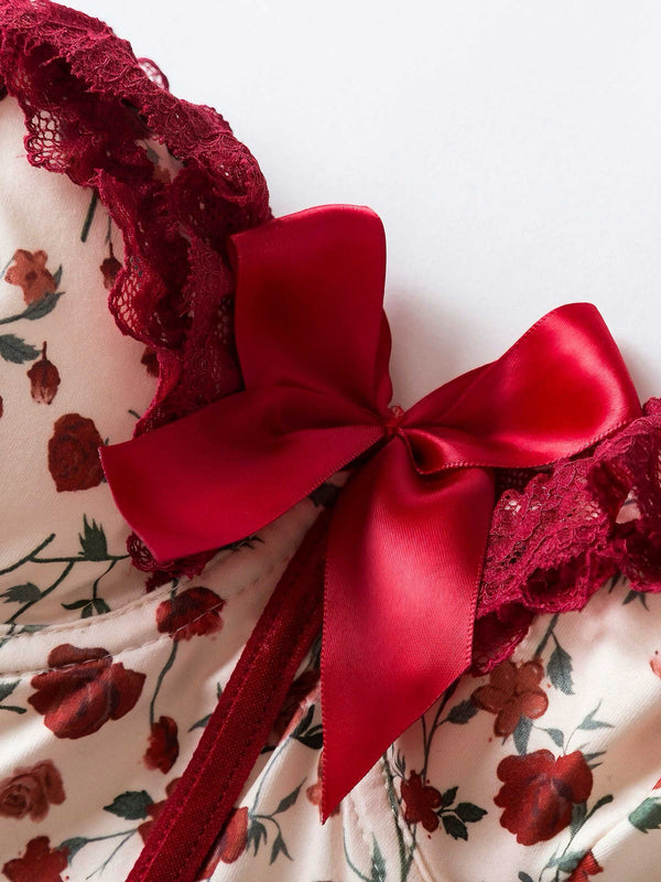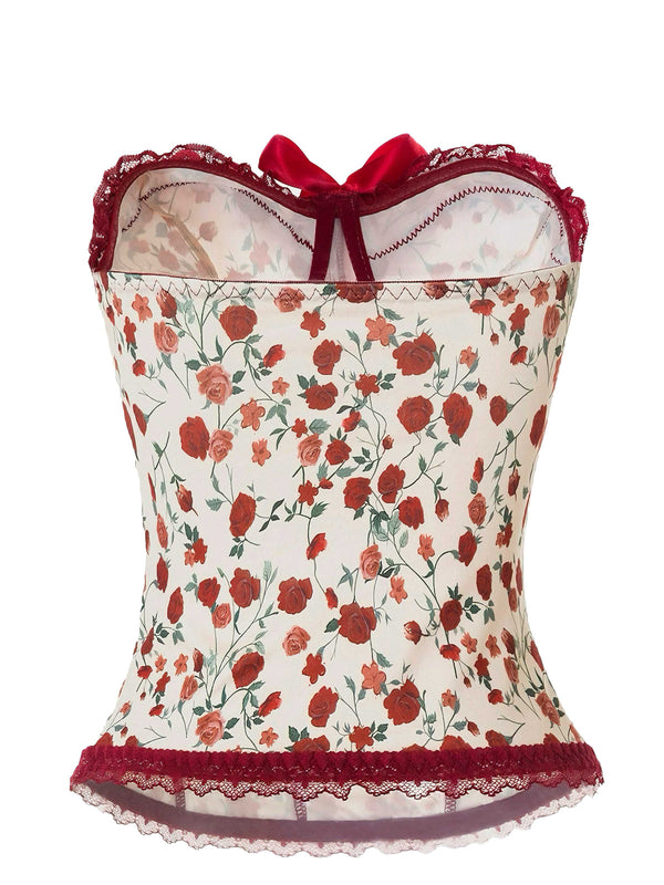 Rot 1970er Trägerlos Gericht Spitze Rosen Korsett