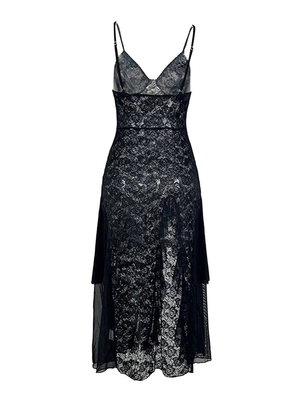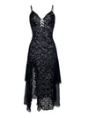 Schwarz 1950er Sheer Blumen Spitze Tief-V Schlitz Nachthemd