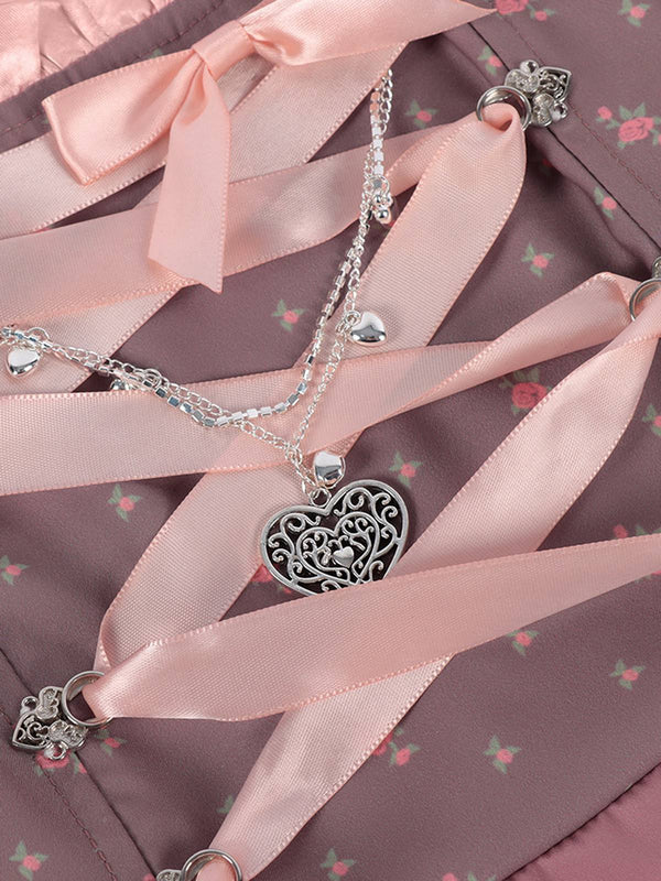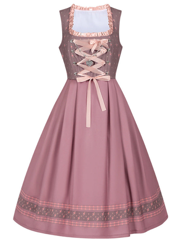 2PCS Nebelrose 1950er Oktoberfest Dirndl Blumen Satin Kleid & Schürze