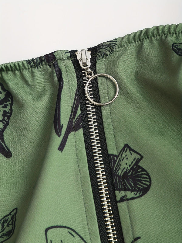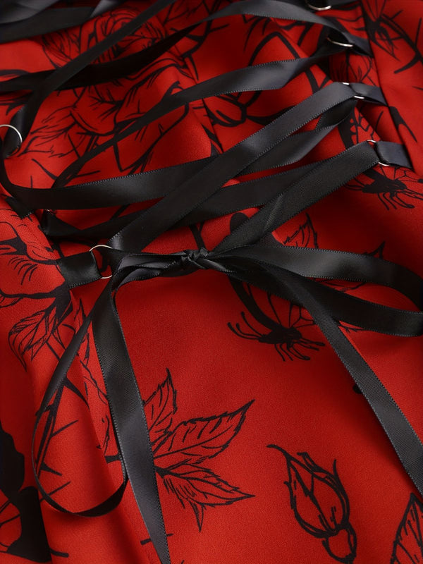 [Übergröße] 1970er Rose Blumen Steampunk Reißverschluss Kleid