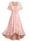 [Übergröße] Rosa 1970er Blumen Rüschen Unregelmäßigem Saum Kleid