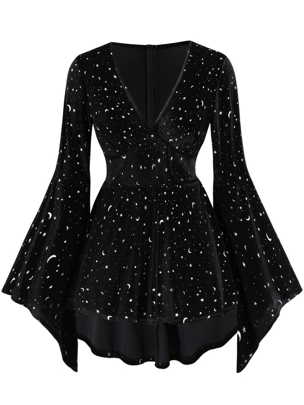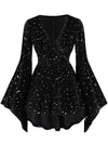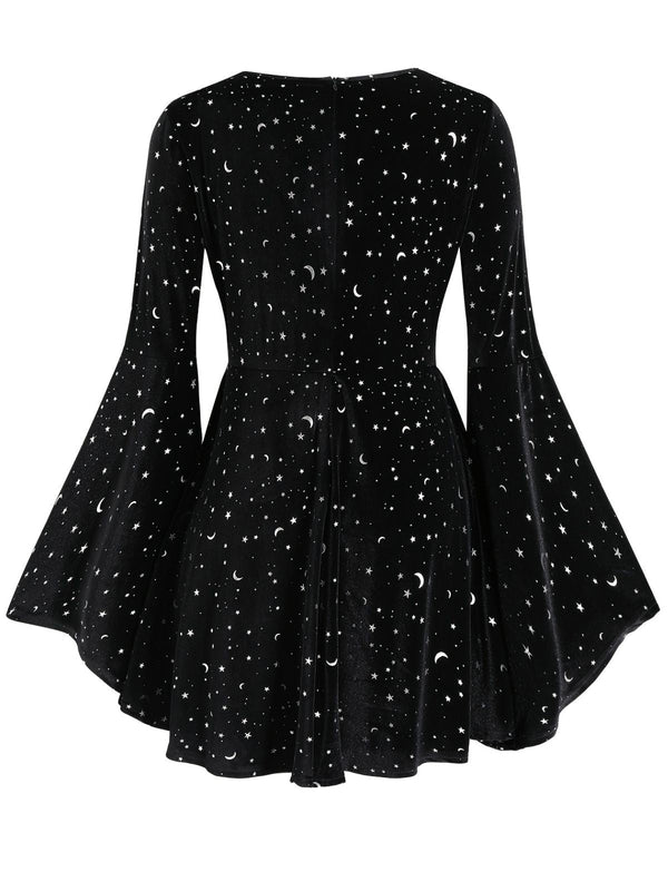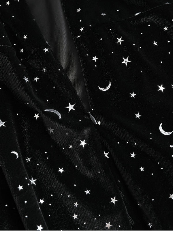 [Übergröße] Schwarz 1960er Stern V-Ausschnitt Samt Kleid