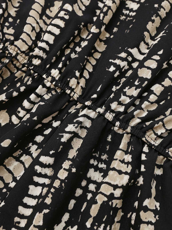 Schwarz 1950er Leopard Quadratischer Hals Romper