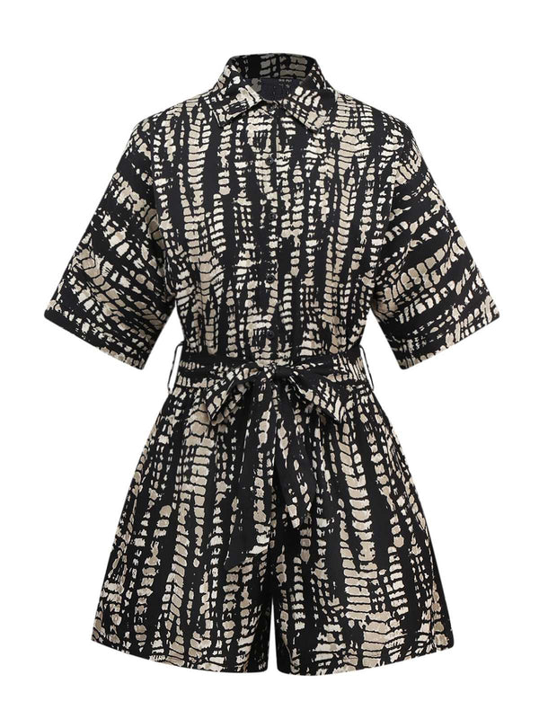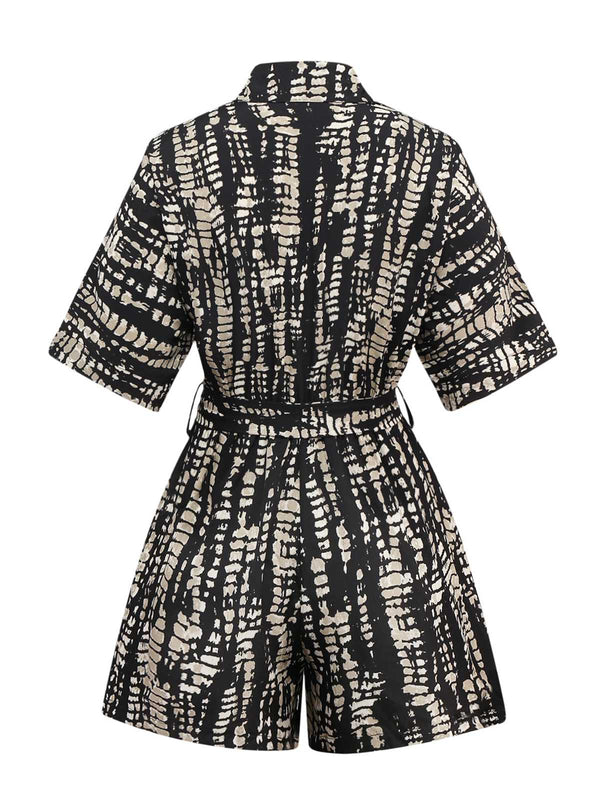 1950er Drucken Tie-Taille Shirt Romper