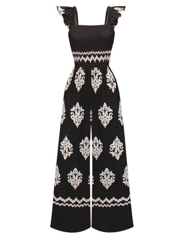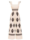 1970er Boho Geometrisch Quadratischer Hals Jumpsuit