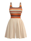 Aprikose 1970er Boho Quadratischer Hals Patchwork Romper