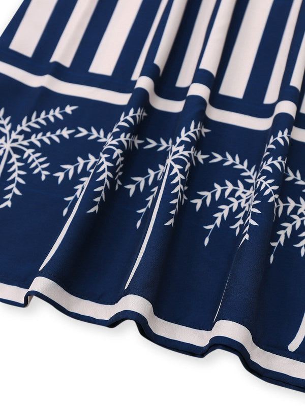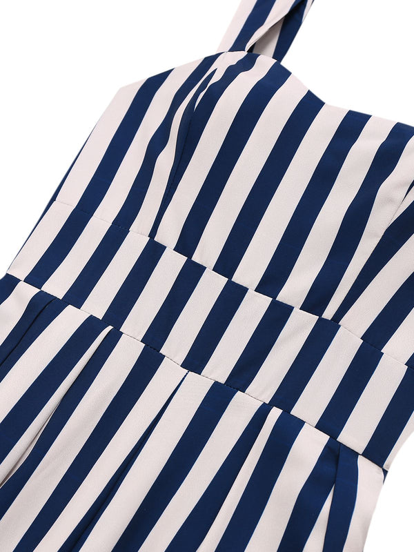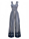Blau 1930er Vertikale Streifen Palme Bäume Jumpsuit