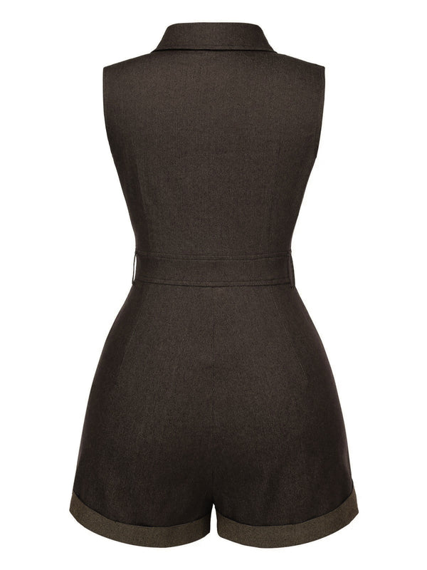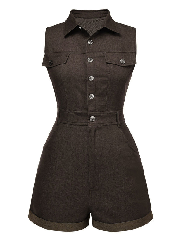 Braun 1970er Solide Baumwolle Ärmellos Denim Romper