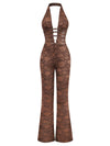 Braun 1970er Solide Schnürung Blumen Spitze Jumpsuit