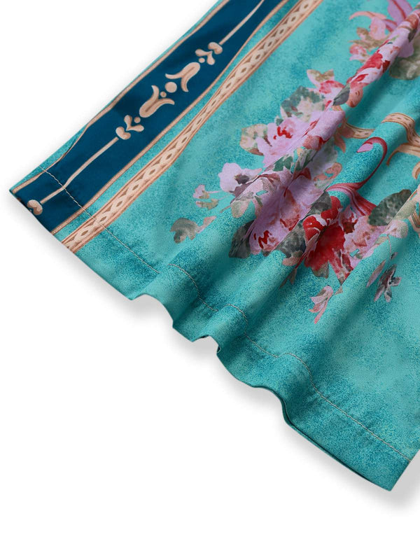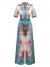 Grün 1930er Symmetrisch Blumen Hemdkragen Jumpsuit