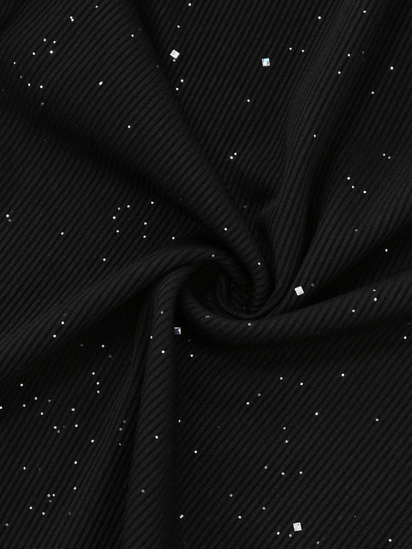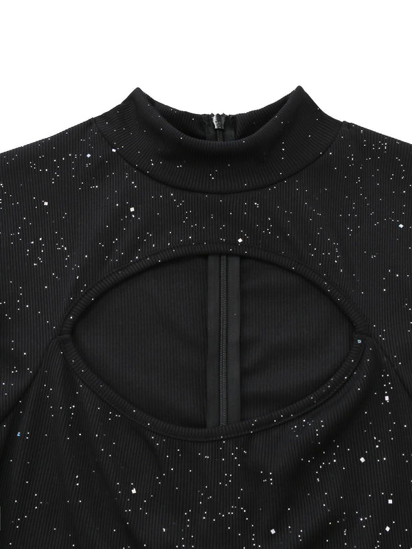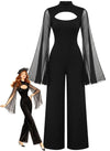 Schwarz 1930er Glitzernd Cutout Jumpsuit mit Umhang