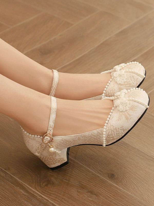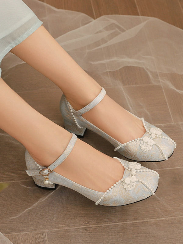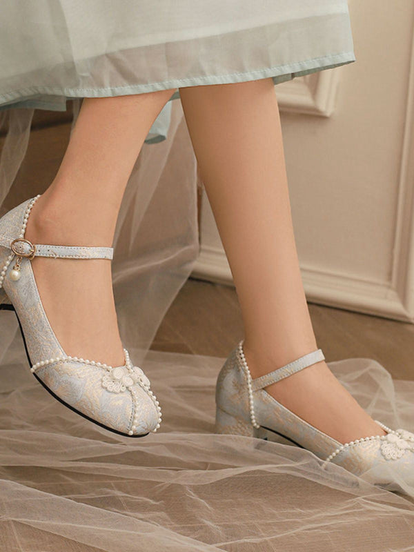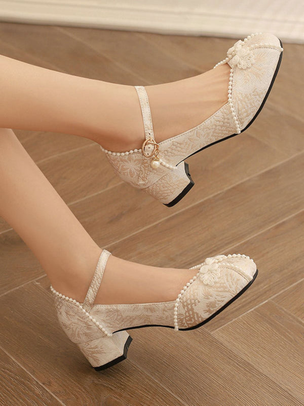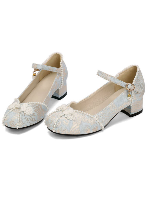 Blumen Jacquard Perle Mary Jane Klobige Absätze