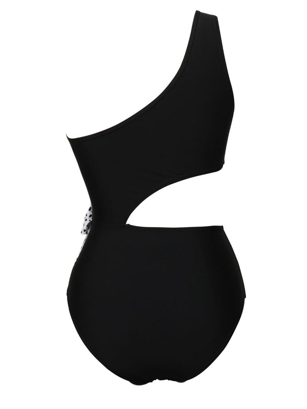 1940er Tupfen Bogen Hohl Out Patchwork Badeanzug