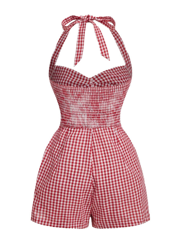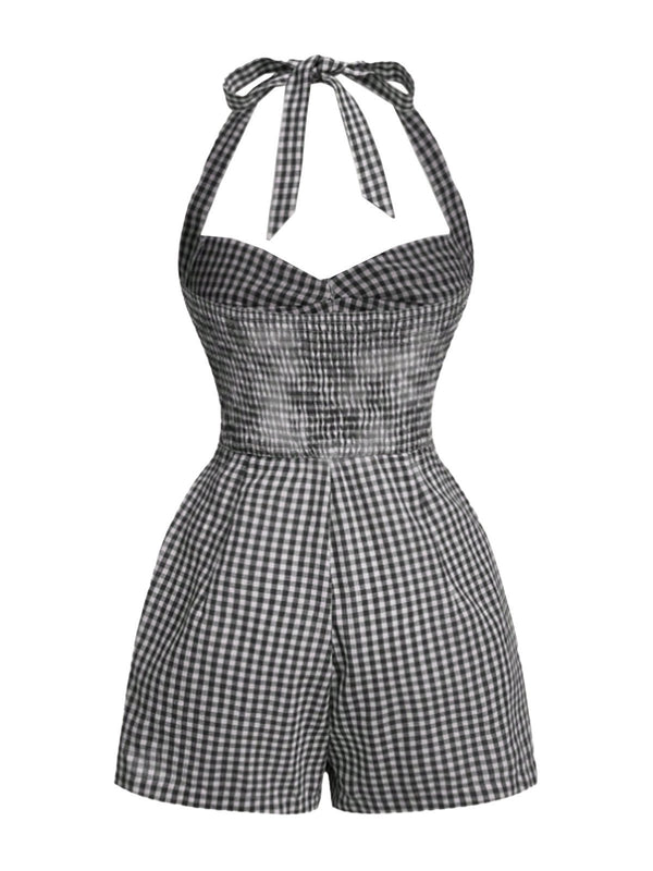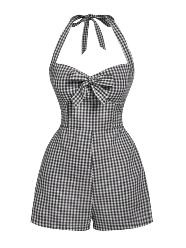 1950er Halter Gingham Plaids Bogen Romper