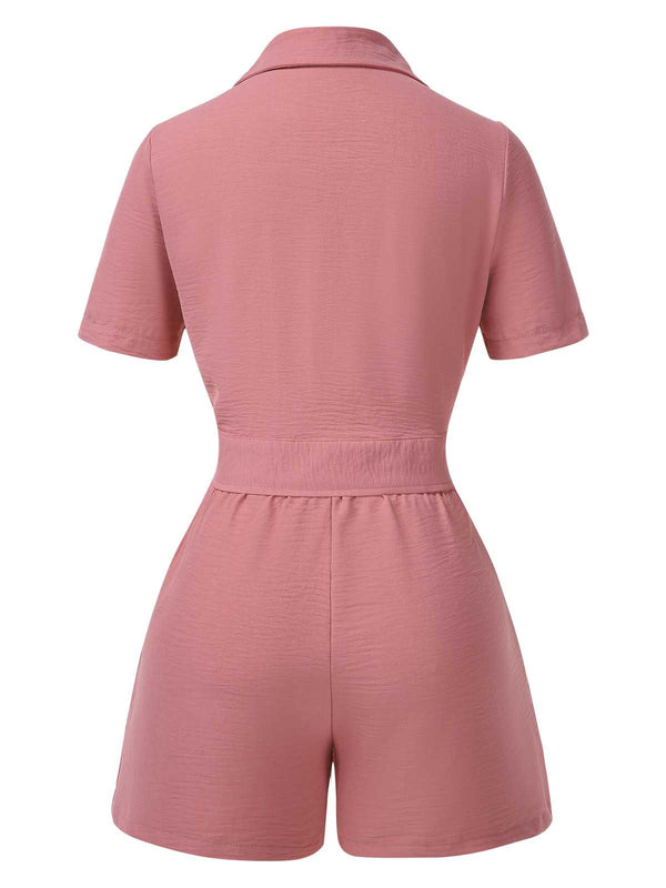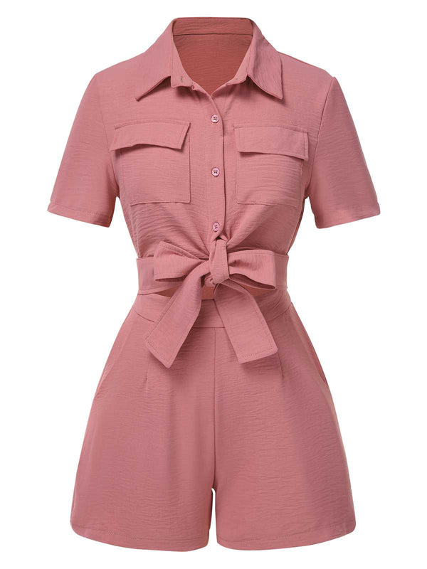 2PCS 1940er Solide Binden Top & Hohe-Taille Shorts