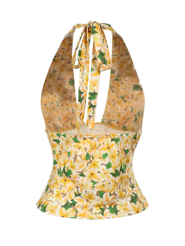 Gelb 1950er Halter Tief V-Ausschnitt Lily Top