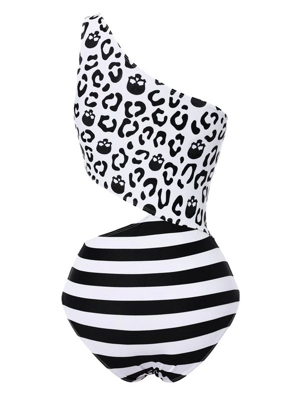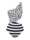 Schwarz 1980er Eine Schulter Hohl Skull Streifen Badeanzug