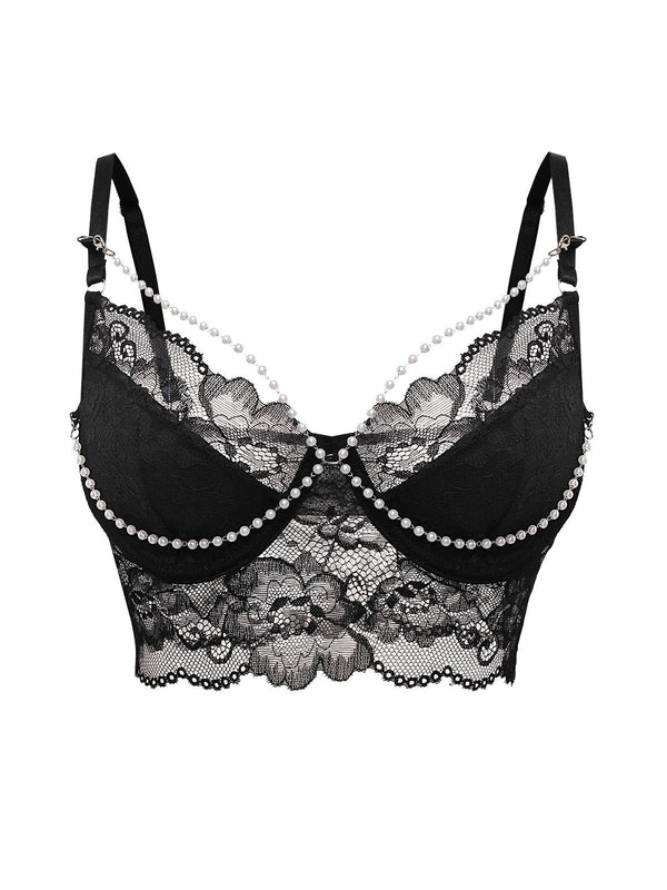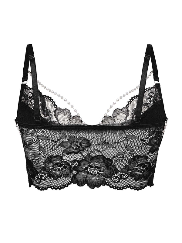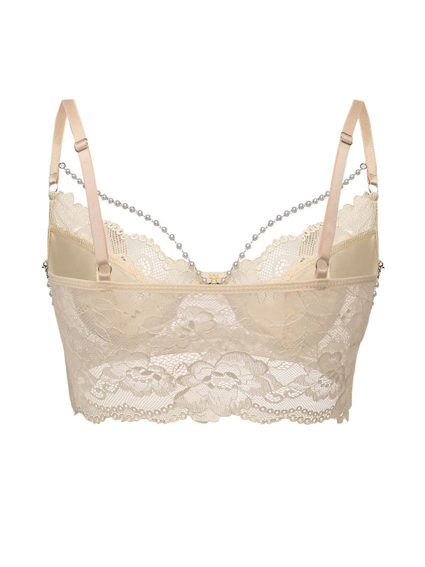 1940er Perle Kette Blumen Spitze Crop Camisole