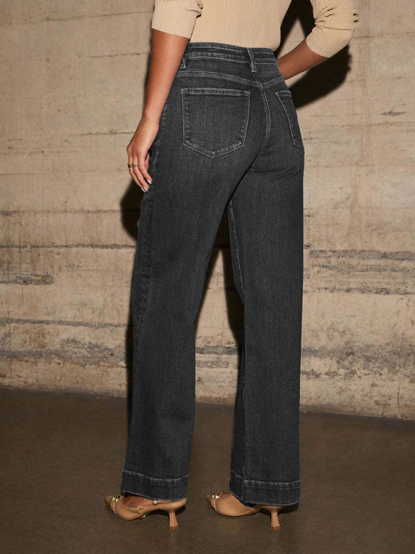 1960er Hohe Taille Weites Bein Patch Tasche Jeans