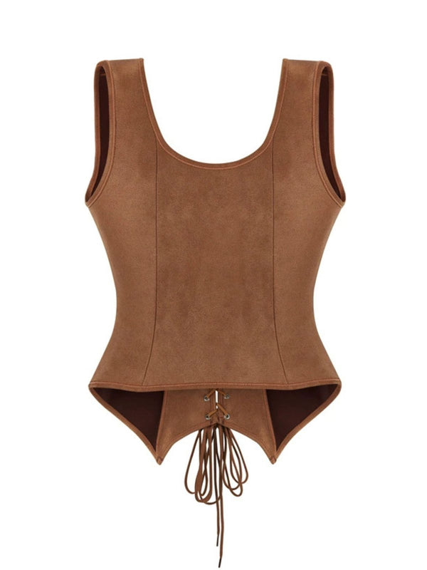 Braun 1950er Suede Schnürung Korsett Weste
