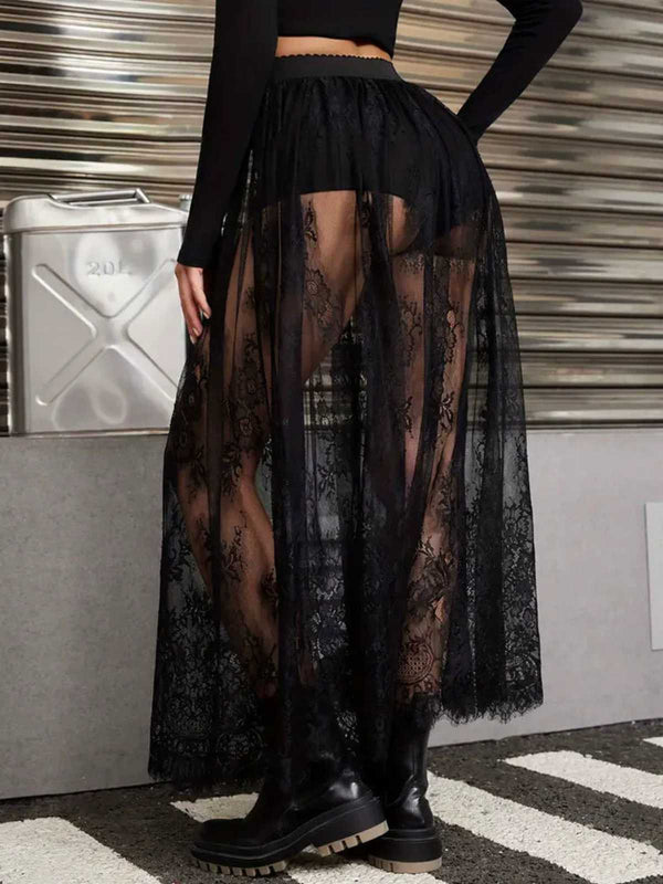 Schwarz 1980er Gothic Durchsichtig Spitze Rock