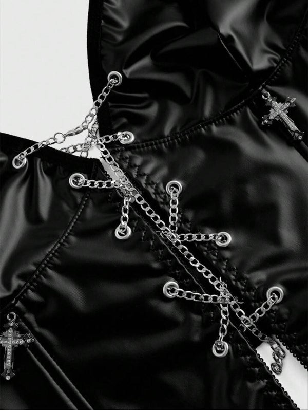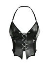 Schwarz 1980er Gothic Kreuz Kordelzug Chain Halter Korsett