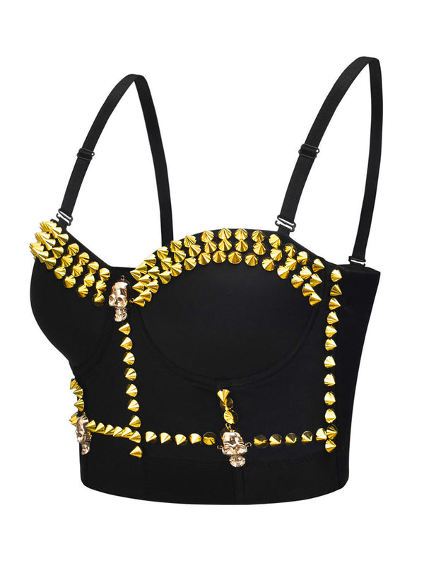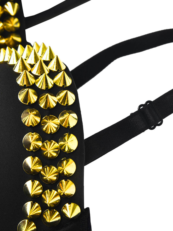 Schwarz Gothic 1980er Halloween Punk Nieten Gotisch Leibchen