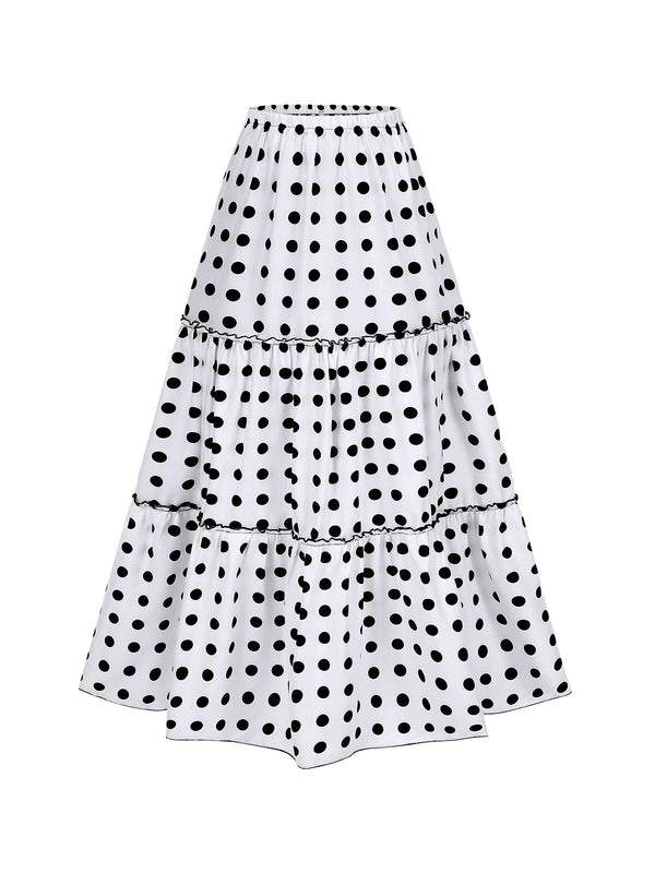 Weiß 1970er Schichtung Saum Tupfen Rock
