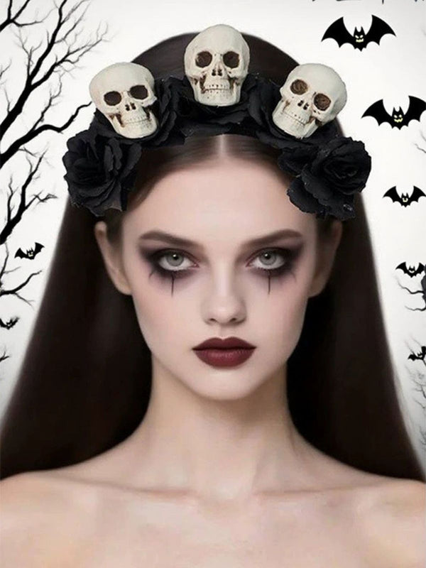 Schwarz Halloween Schädel & Rosen Stirnband