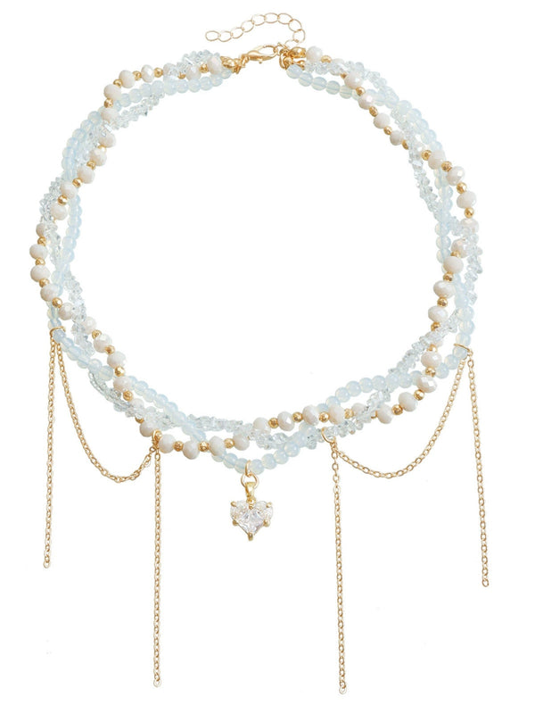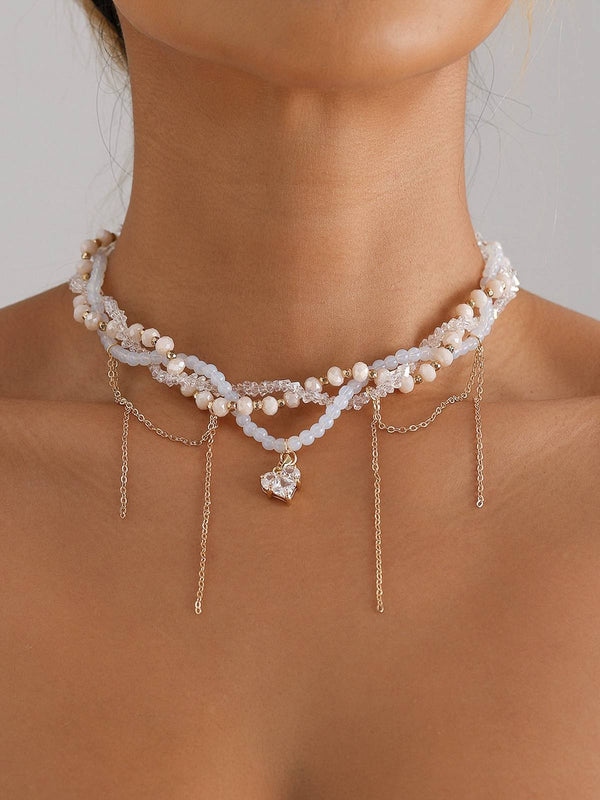 Weiß Herz Strassstein Anhänger Perlen Halskette