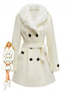 1940er Abnehmbar Kunstpelz Kragen Schaltflächen Mantel