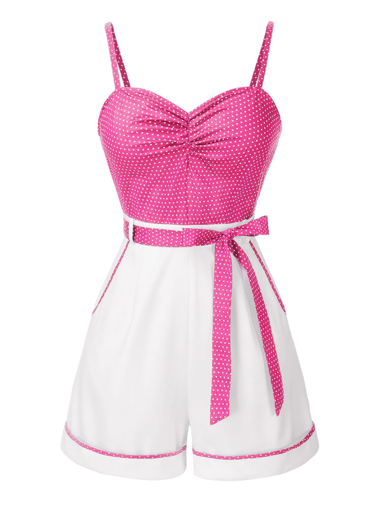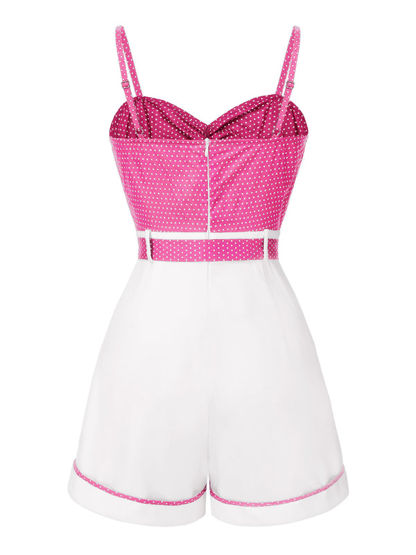 Blau 1940er Polka Dot Patchwork Träger Romper