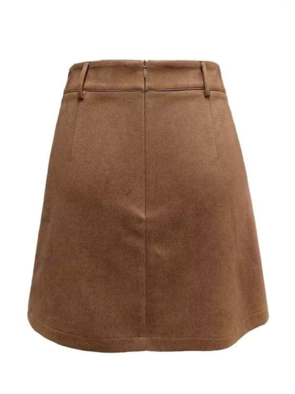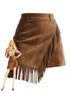 Braun 1960er Kunst-Wildleder Fransen Asymmetrisch Saum Rock