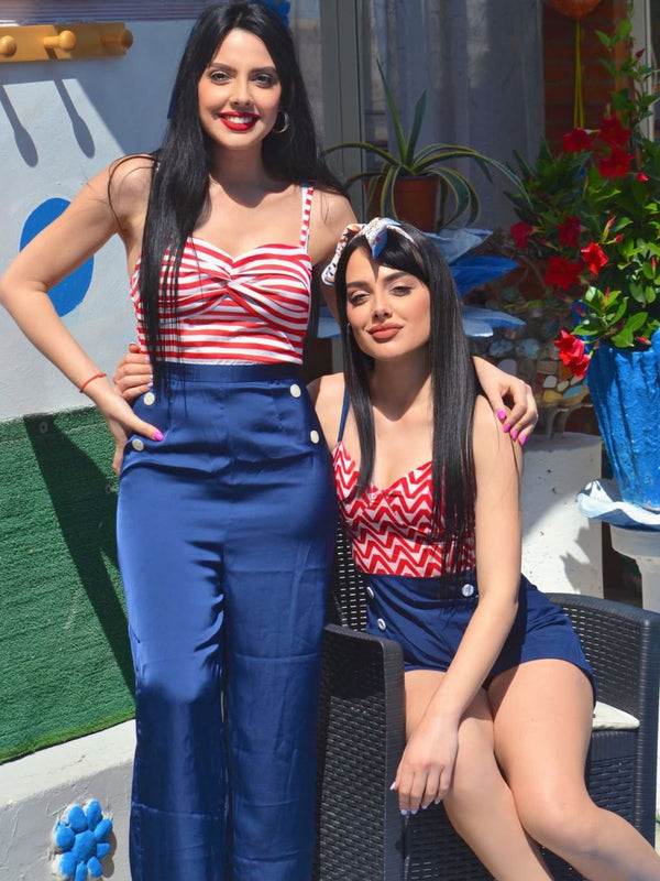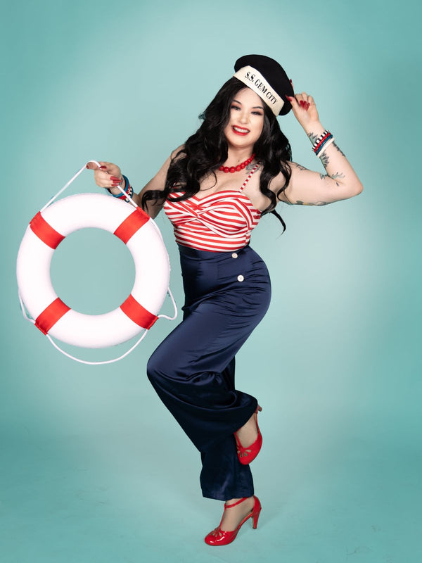 Dunkelblau 1930er Spaghetti Träger Streifen Jumpsuit
