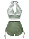 Grün 1950er Rundhals Halter Hohl Streifen Badeanzug