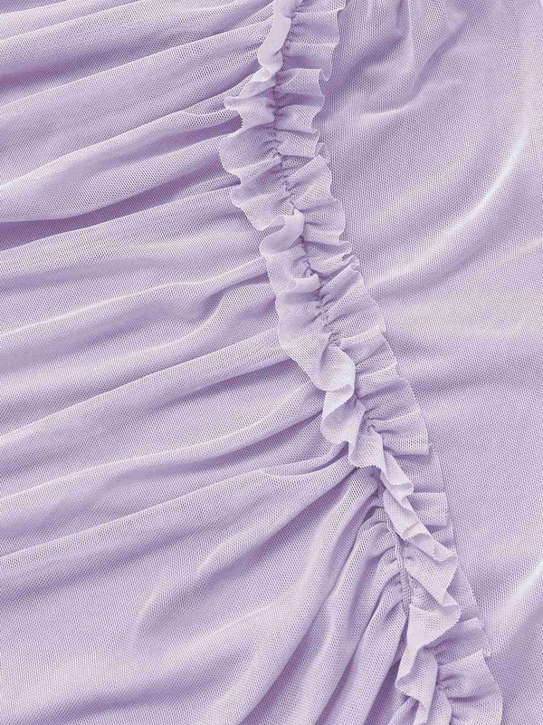 Lila 1970er Netz Eine Schulter Rüschen Asymmetrisch Kleid