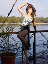 Multicolor 1960er Palm Leaf Badeanzug & Cover-Up
